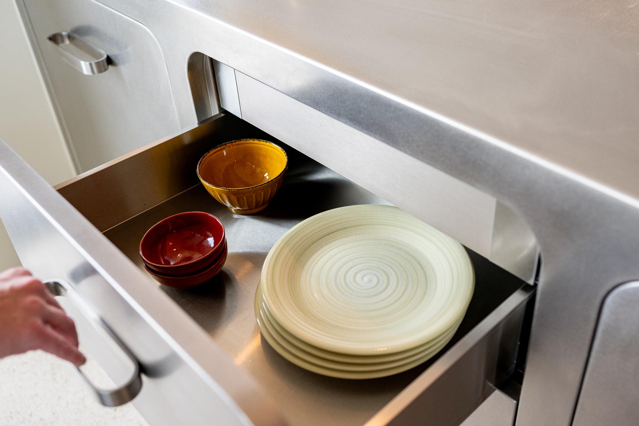 Dans "Manufacture", tout est pensé pour améliorer votre expérience culinaire sans compromettre le style. Le système d'eau intégré Aqualex fournit une eau filtrée et fraîche directement du robinet, et la hotte Novy Panorama assure un espace cuisine pur et ouvert sans hotte visible gênante. Les deux systèmes sont intégrés de manière transparente dans le design, alliant ainsi fonctionnalité et esthétique.