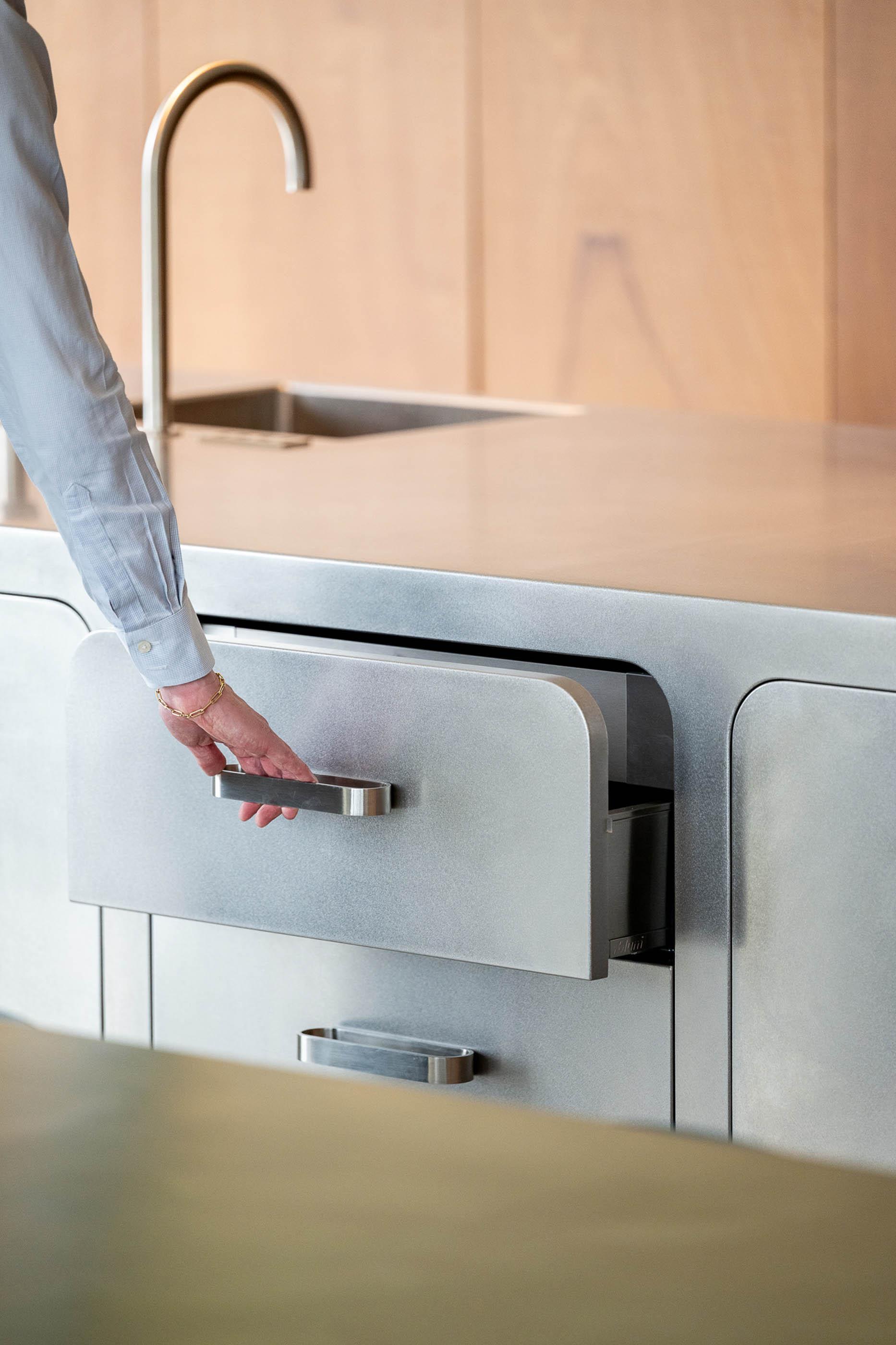 La ligne "Manufacture" incarne l'essence de Håndwerk : des matériaux purs, un design intemporel et une finition soignée. Chaque élément est fabriqué à la main pour briller autant sur le plan visuel que fonctionnel. Ces cuisines allient un design minimaliste élégant à des technologies avancées, telles que le système d'eau Aqualex pour une eau filtrée directement du robinet et la hotte Novy Panorama, discrètement intégrée dans le plan de travail pour une finition homogène et un espace optimisé.