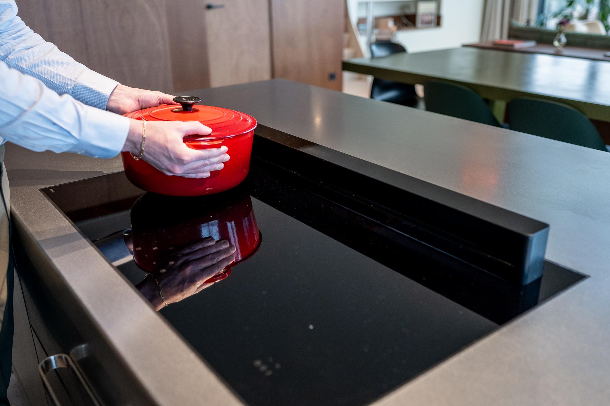 Bij "Manufacture" draait alles om het verbeteren van uw kookervaring zonder concessies te doen aan stijl. Het ingebouwde Aqualex-watersysteem levert gefilterd en gekoeld water rechtstreeks uit de kraan, en de Novy Panorama inductie kookplaat met ingebouwde downdraft dampkap zorgt voor een zuivere en open keukenruimte zonder hinderlijke afzuigkappen. Beide systemen zijn naadloos geïntegreerd in het design, zodat functionaliteit en esthetiek hand in hand gaan.