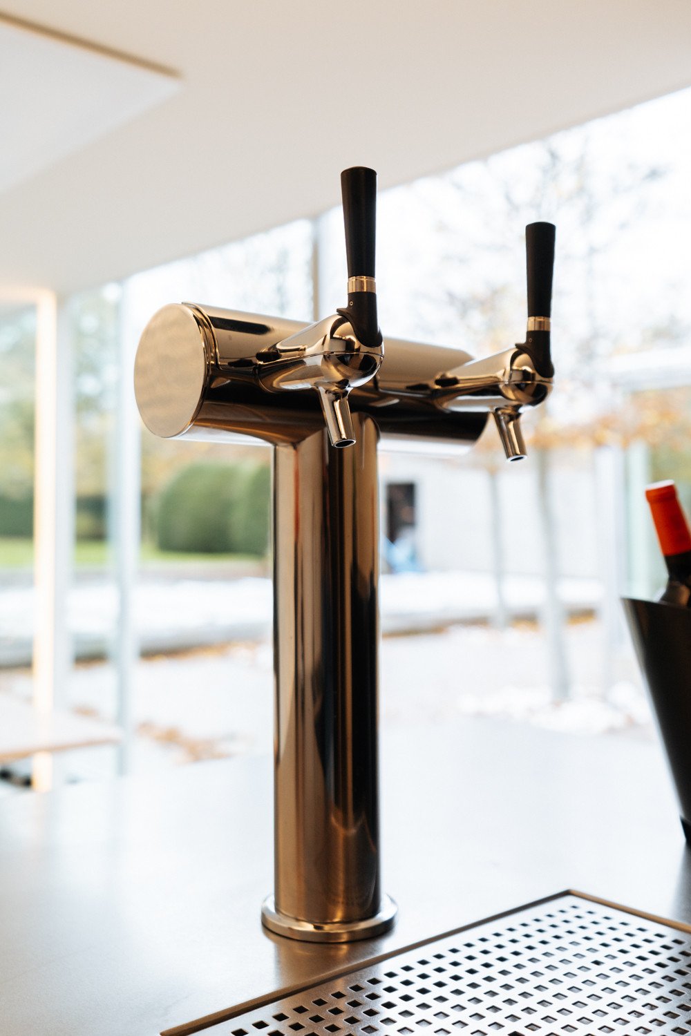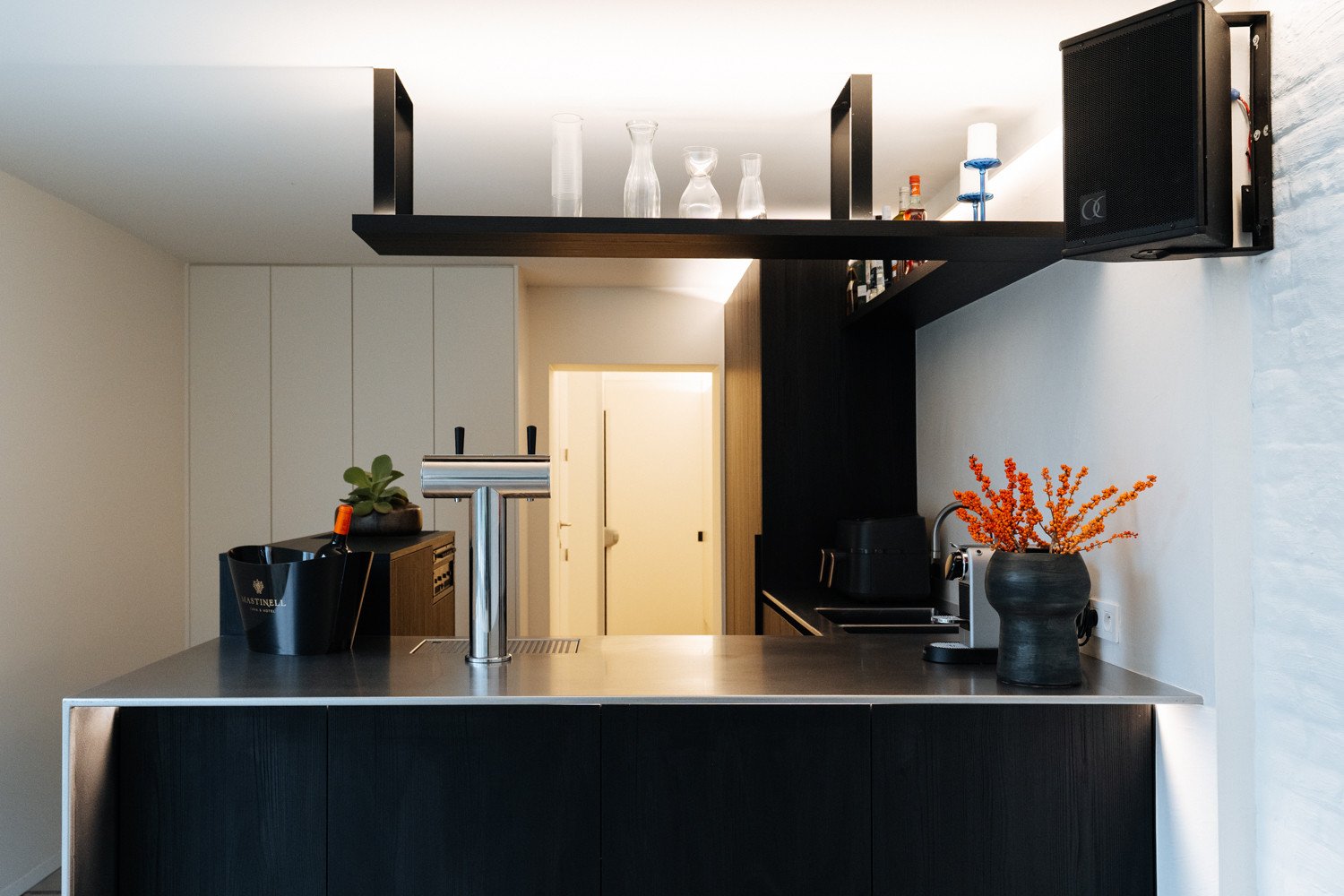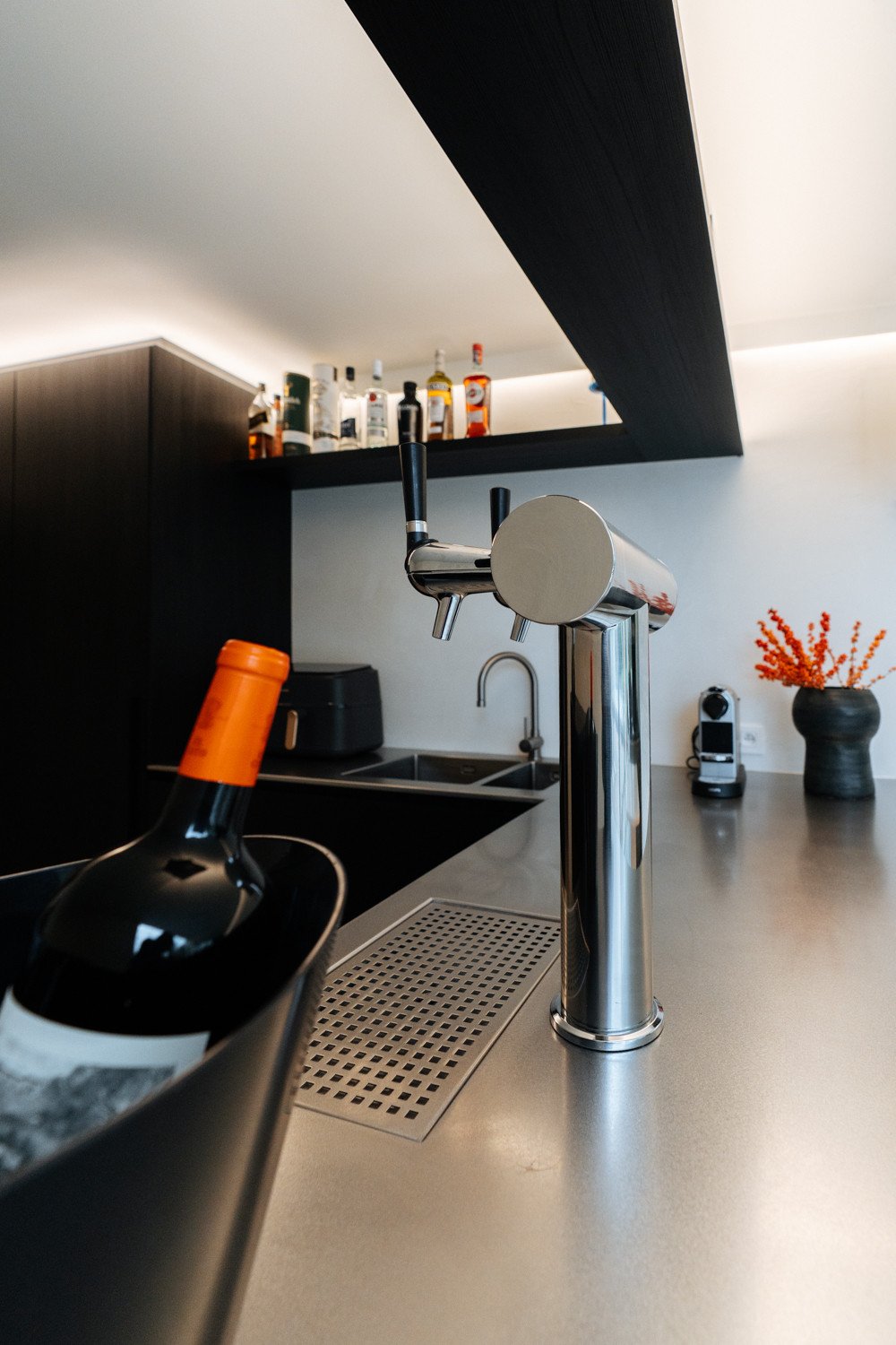 Mooie privé bar met naadloos ʜᴀ̊ɴᴅᴡᴇʀᴋ werkblad met dubbele tapzuil. Prachtig in combinatie met het schrijnwerk.